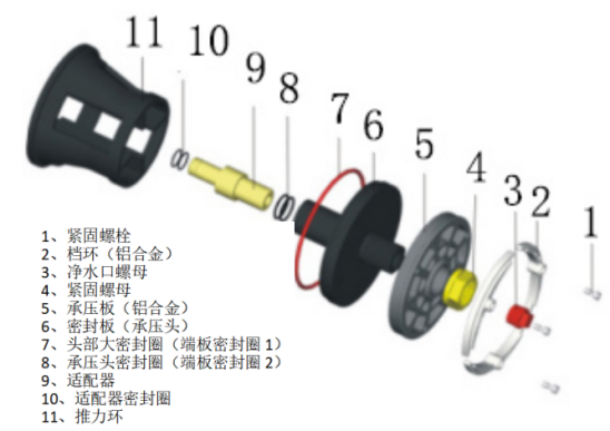 膜壳端盖配件包括铝制承压板,挡圈,承压头,适配器,适配器密封圈,推力环,侧口,侧口密封圈等,可根据损坏部件进行更换,或更换整套端盖。膜壳主要用于工业水处理反渗透工艺。可根据膜壳压力范围选择:150Psi,300Psi,450Psi,600Psi,1000Psi等压力范围。